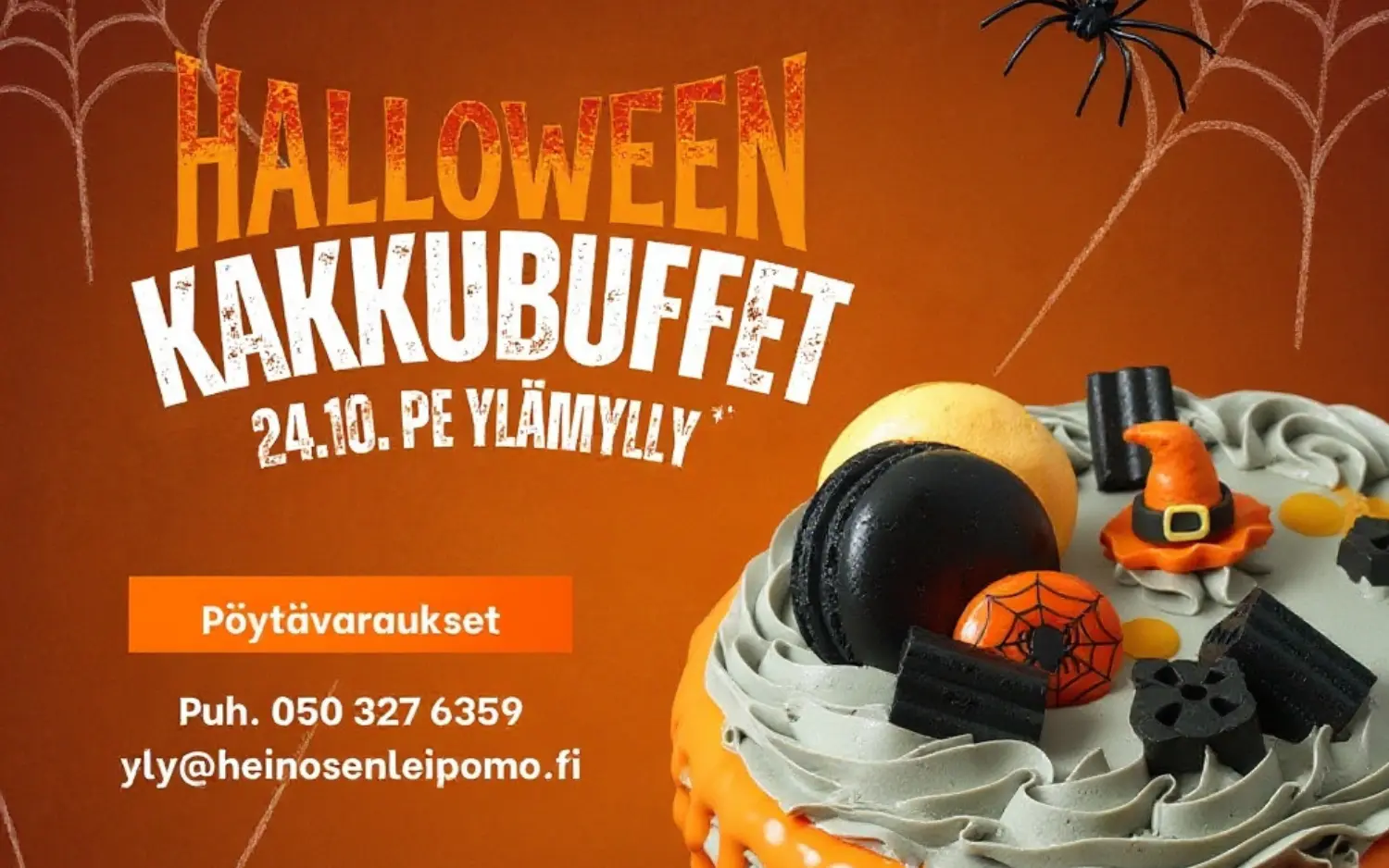 Pimenevä syysilta, kynttilänvaloa ja notkuvat pöydät täynnä hurmaavia herkkuja! Heinosen Leipomon Halloween Kakkubuffet kutsuu nauttimaan makeista ja suolaisista luomuksista, jotka on koristeltu halloweenteemaan sopivina. Tule herkuttelemaan Ylämyllyn kahvilaan perjantaina 24.10.!