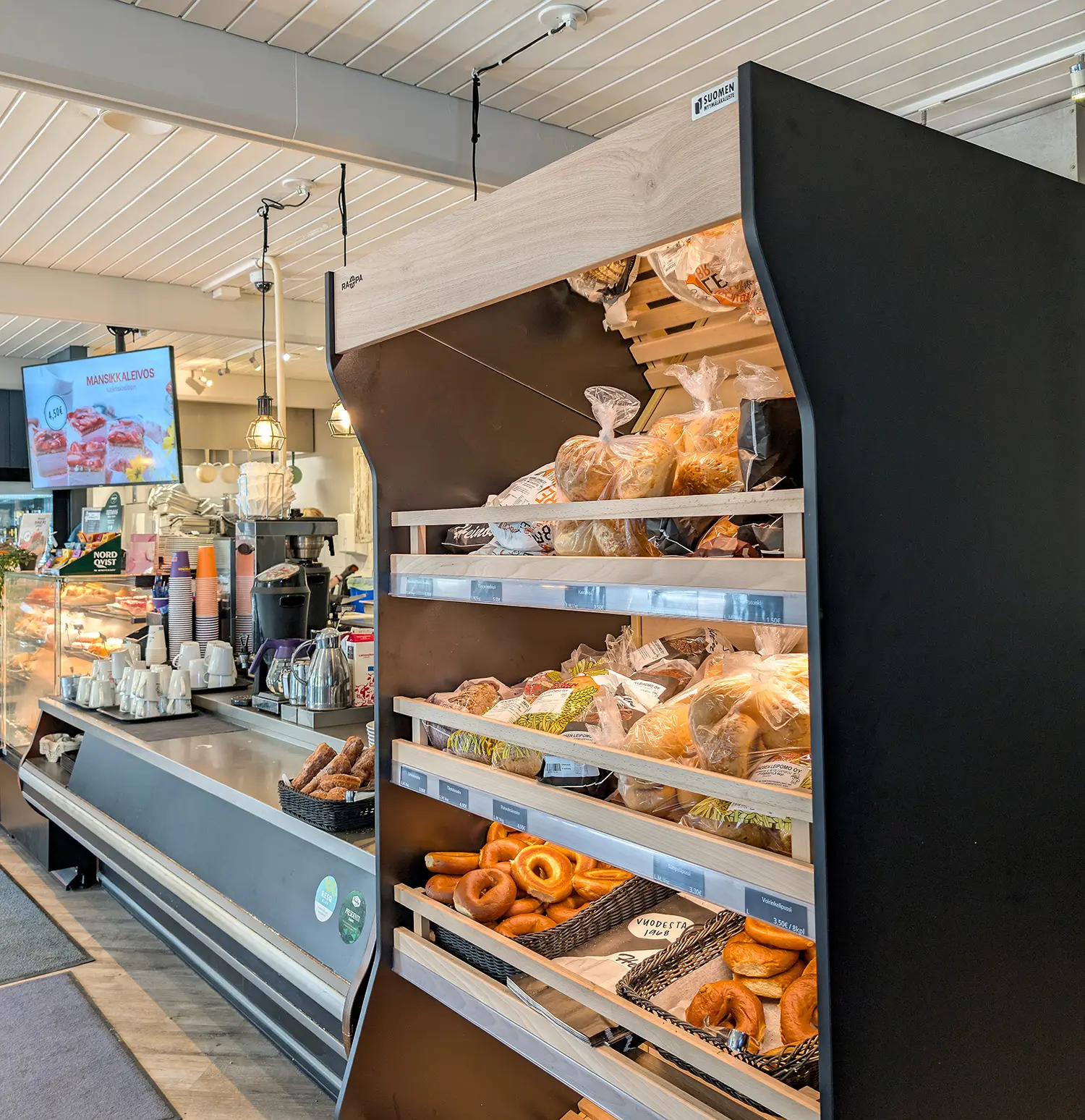 Astu peremmälle punaiseen tupaan! Vanhin ja perinteikkäin toimipisteemme sijaitsee teollisuusalueella Joensuussa. Jo vuodesta 1968 lähtien olemme tarjonneet niin paikallisille kuin ohi ajaville matkaajille makuelämyksiä, jotka kantavat isältä pojalle. Leipomomme yhteydessä sijaitsevan, vuonna 2024 uudistuneen kahvilan herkkuvitriinit täytetään aina aamuvarhaisella. Voit napata lähileivän kainaloon uunituoreena vaikka työmatkasi varrelta. Valikoimaan kuuluvat monipuolinen lounasbuffet, aina tuoreet leipomotuotteet, maukas puuroaamiainen, täytekakut ja muut konditorian herkut sekä lämpimät toastit ja täytetyt patongit. Kesäisin voit myös nautiskella ihanista herkuistamme kahvilan yhteydessä sijaitsevalla viihtyisällä terassilla. Toimitamme laadukkaita tuotteitamme Joensuun ja lähialueiden asiakkaille sekä kauppoihin ympäri maakuntaa. Voit nauttia herkuistamme paikan päällä kahvilassa tai napata ne mukaan take-away. Kahvilan yhteydessä esteetön WC.