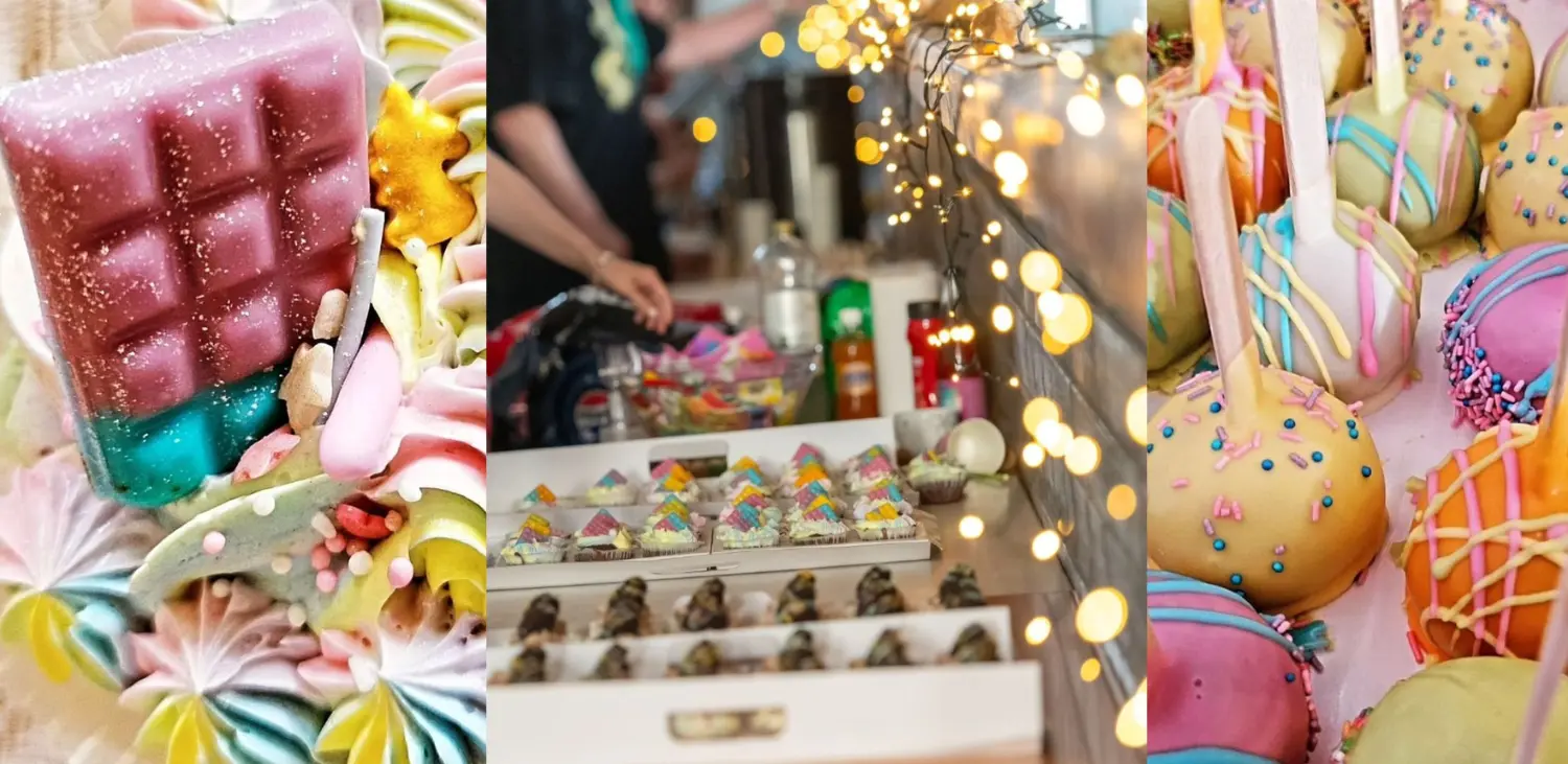 …Ja sitten on niitä hetkiä, kun perinteet heitetään huoletta sivuun ja tehdään jotain täysin parin näköistä. Esimerkiksi eräässä hurmaavassa juhlassa – joita kutsuttiin rakkaudella homohäiksi – hääkakun sijaan hääparin toiveena oli vain sateenkaaren värisiä överivärikkäitä cupcakes-kuppikakkuja ja kakkutikkareita. Me toteutimme kuppikakut heidän toiveidensa mukaisesti ja koristelimme ne kimalluksella sekä pienillä syötävillä koristeilla, jotka veivät vieraat ihan ällistyttävän iloiselle makumatkalle. Eikä kukaan jäänyt kaipaamaan perinteistä hääkakkua!