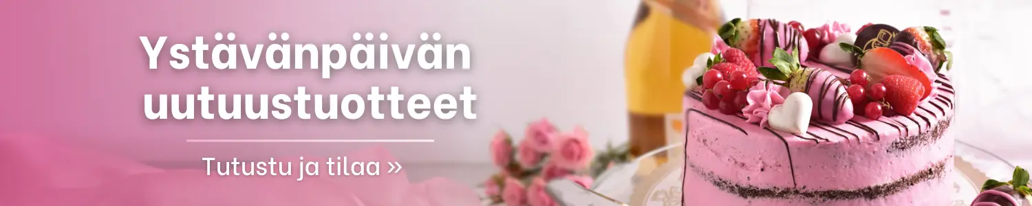 Ystävänpäivä on täydellinen tilaisuus herkutella ja ilahduttaa läheisiä makeilla yllätyksillä! Tänä vuonna valikoimastamme löydät toinen toistaan herkullisempia leivonnaisia, jotka tuovat iloa niin ystäville, perheelle kuin itsellesikin.