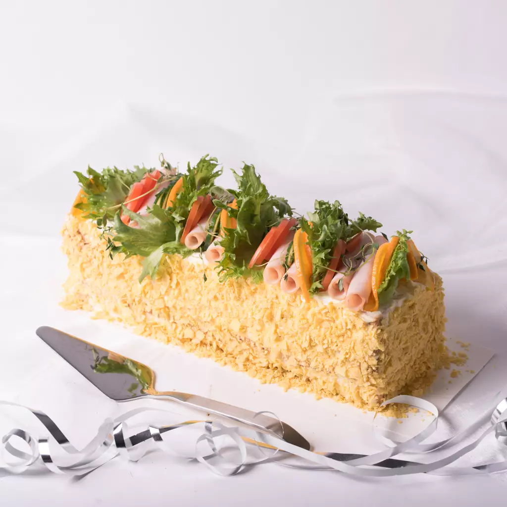 Modernisti maukas meksikohenkinen broilerivoileipäkakku sopii kaikkiin juhliin aina valmistujaisista rippipöytään. Sisällä tex mex-maustetusta kotimaisesta broilerista, paprikasta, sipulista, tuorejuustosta sekä majoneesista valmistettu maukas täyte. Oman leipomon moniviljaleivällä leivottu kakku viimeistellään suussa sulavan herkulliseksi kokonaisuudeksi tuorejuusto-majoneesikuorrutteella, tuoreilla kasviksilla, broilerileikkeleellä ja rouhituilla nacholastuilla. Olé!