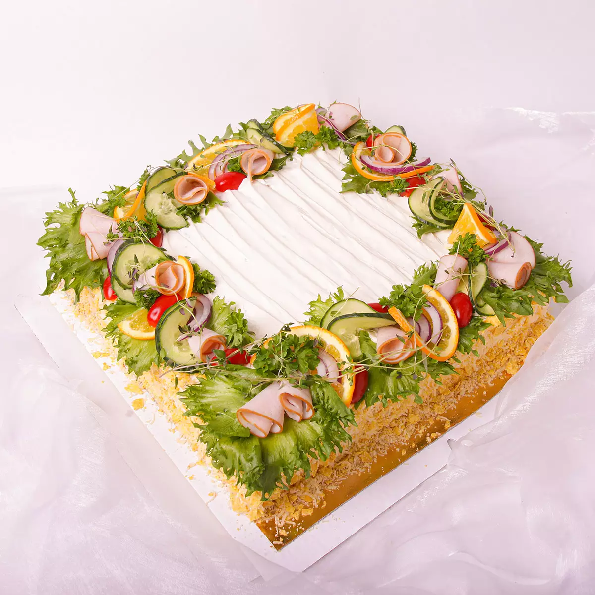 Modernisti maukas meksikohenkinen broilerivoileipäkakku sopii kaikkiin juhliin aina valmistujaisista rippipöytään. Sisällä tex mex-maustetusta kotimaisesta broilerista, paprikasta, sipulista, tuorejuustosta sekä majoneesista valmistettu maukas täyte. Oman leipomon moniviljaleivällä leivottu kakku viimeistellään suussa sulavan herkulliseksi kokonaisuudeksi tuorejuusto-majoneesikuorrutteella, tuoreilla kasviksilla, broilerileikkeleellä ja rouhituilla nacholastuilla. Olé!