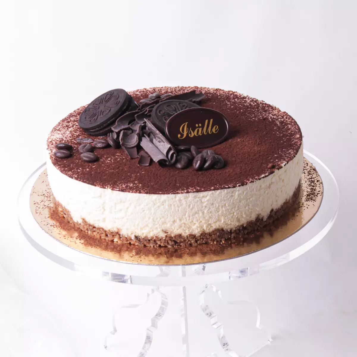 Tiramisu -juustokakku on suunniteltu erityisesti isänpäivän tärkeisiin hemmotteluhetkiin. Tässä edullisessa gluteenittomassa ja vähälaktoosisessa juhlakakussa yhdistyvät tumman suklaan ja pehmeän tiramisumoussen klassinen makupari. Siinä vasta täydellinen yhdistelmä kaikille kahvin ja suklaan ystäville!Kakun pohjana on gluteeniton kahvilla maustettu keksipohja, joka antaa jokaiselle suupalalle ihanan rouskuvaa makua. Kermaisen pehmeä tiramisumousse tuo makuun syvyyttä ja täyteläisyyttä ja huoliteltu koristelu viimeistelee juustokakun. Pinnalla on gluteenittomia suklaapikkuleipiä, suklaata, suklaisia mokkapapuja sekä tyylikäs suklaasta valmistettu “Isälle” - laatta. Yllätä iskä tai ukki Joensuun maistuvimmalla kakulla!