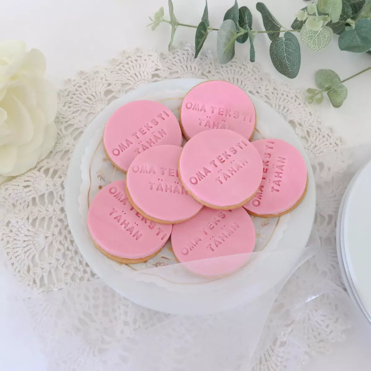 Sokerimassalla koristellut nimipikkuleivät ovat nimiäisten, kastejuhlien ja ristiäisten ykkösvalinta ja sopivat myös erinomaisesti esimerkiksi valmistujaisten juhlapöytään. Keksit leivotaan 100% käsityönä Pohjois-Karjalassa ja jokainen keksi on omanlaisensa uniikki luomus. Aidolla voilla leivottuun nimikeksiin on mahdollista painaa 1-3 nimeä. Teksti voi sisältää myös numeroita. Keksin halkaisija on noin 5-10cm sanojen pituudesta riippuen.