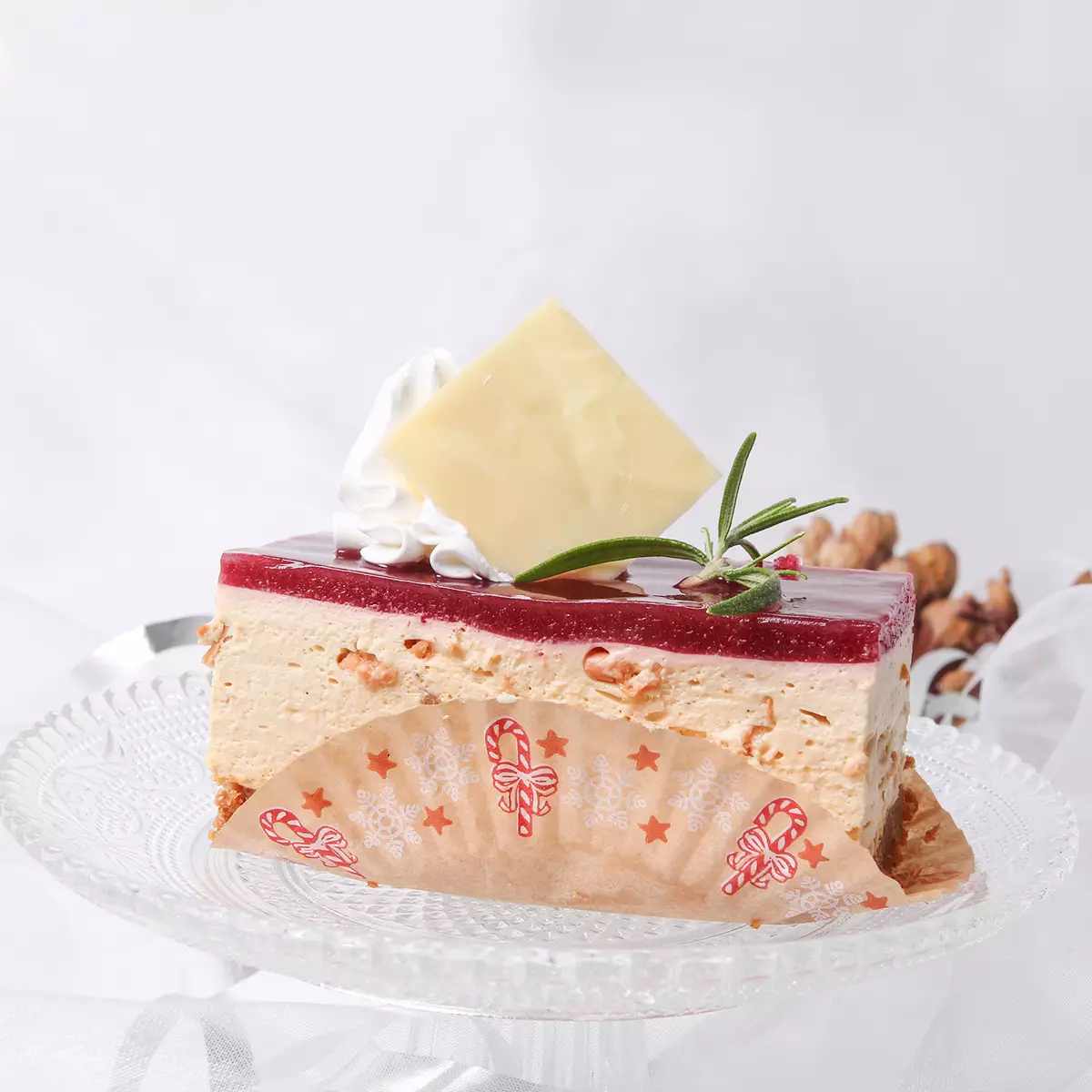 Puolukka kinuskileivokset sisältävät lempeän mausteisista pipareista tehdyn keksipohjan, pehmeää kinuskimoussea sekä aidosti marjaisan puolukkakiilteen. Nämä joulun väriset leivokset kruunataan tuoreella rosmariinilla sekä belgialaisella valkosuklaalla elegantiksi ja näyttäväksi kokonaisuudeksi.