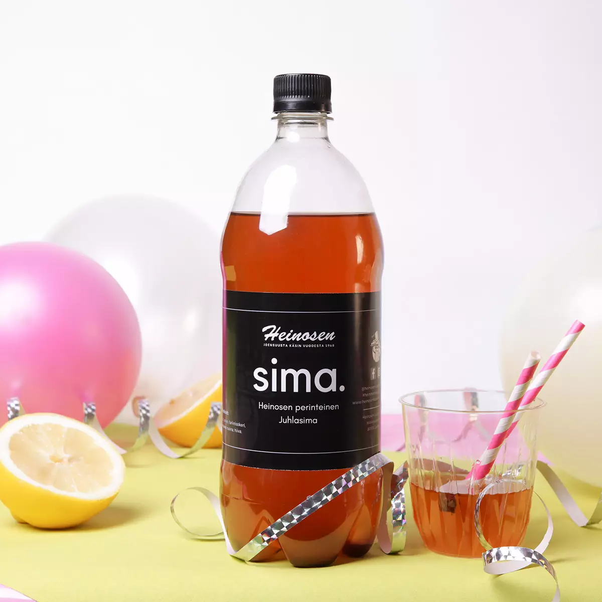 Heinosen leipomon juhlasima – valmistettu klassikkoreseptillä, joka maistuu jokaiselle. Sima valmistetaan samalla käymismenetelmällä kuin kotonakin, sitruunasta, kidesokerista, fariinisokerista sekä vedestä. Siksi siman maku on ihanan perinteinen ja lapsuudesta tuttu, makea ja kupliva. Suoraan sanottuna mahottoman hyvvää ja raikasta. Hauskaa Wappua!