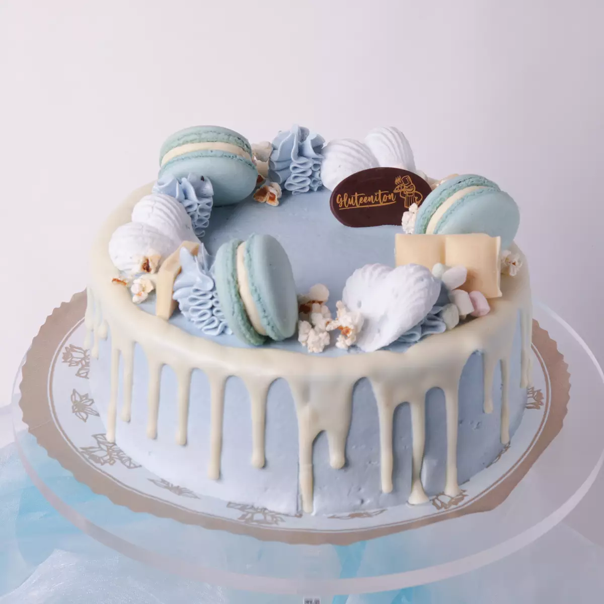Herkkä Baby Boy -kakku on suunniteltu erityisesti pikkuisten poikalasten juhliin, kuten ristiäisiin, baby showereille ja lasten syntymäpäiville. Tämä herkku tarjoaa upean makuelämyksen, sillä sen sisältä löytyy runsasmarjaista mansikkamoussea. Kakun pintaa koristavat kondiittoriemme itse valmistamat macaronleivokset, makeiset ja marengit sekä kaakaopikkuleivät. Kokonaisuus kruunataan visuaalisesti kauniiksi kokonaisuudeksi valkosuklaan makuisilla valumakoristeilla.