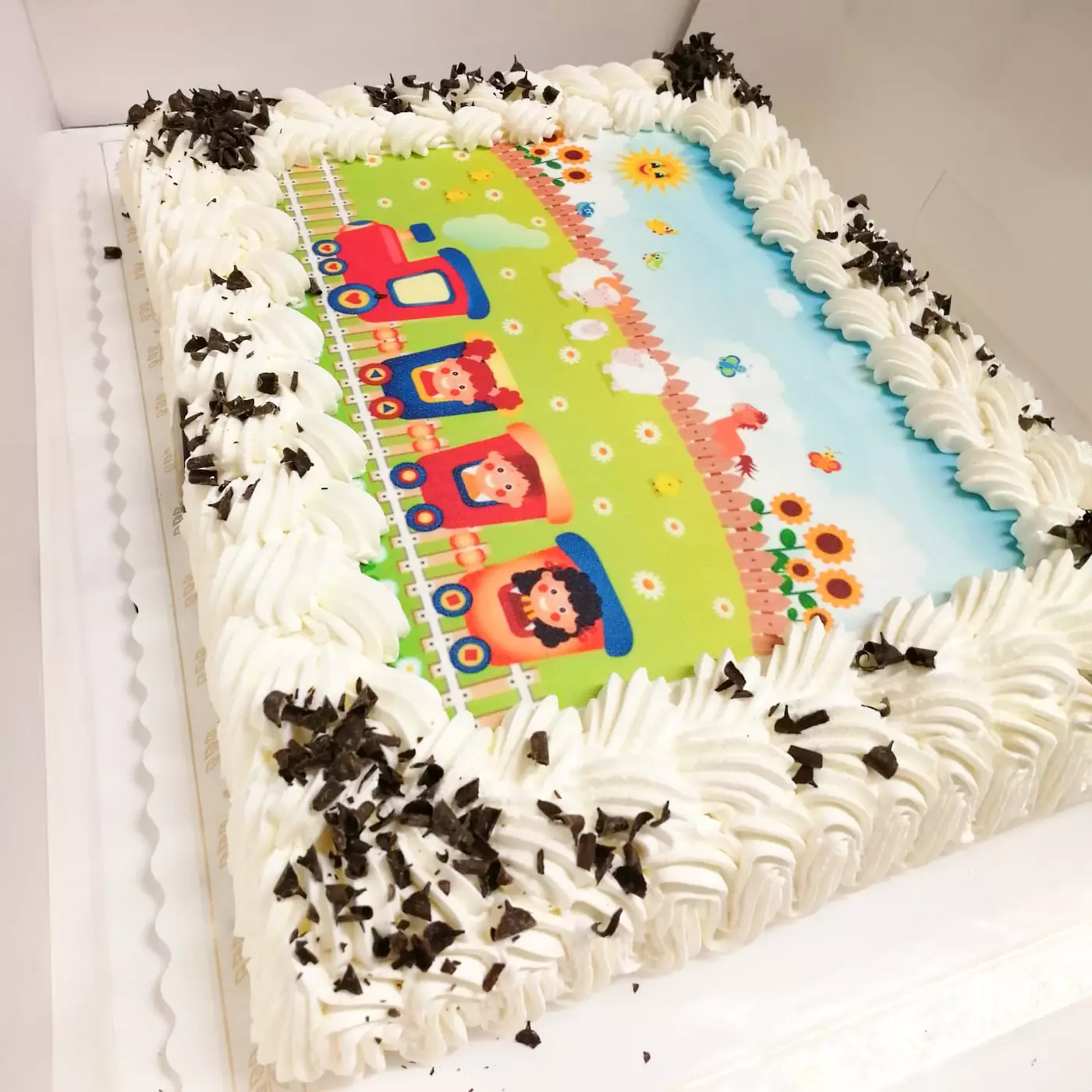 Muokkaamme kuvaa tarpeen vaatiessa paremmin kakun pinnalle sopivaksi. Lähetä toivomasi kuva meille verkkokaupan "lataa painike"-toiminnolla tai sähköpostitse tekemäsi kakkutilauksen jälkeen osoitteeseen: toimisto@heinosenleipomo.fi - tulostamme kuvan kakkuun toiveidesi mukaan.