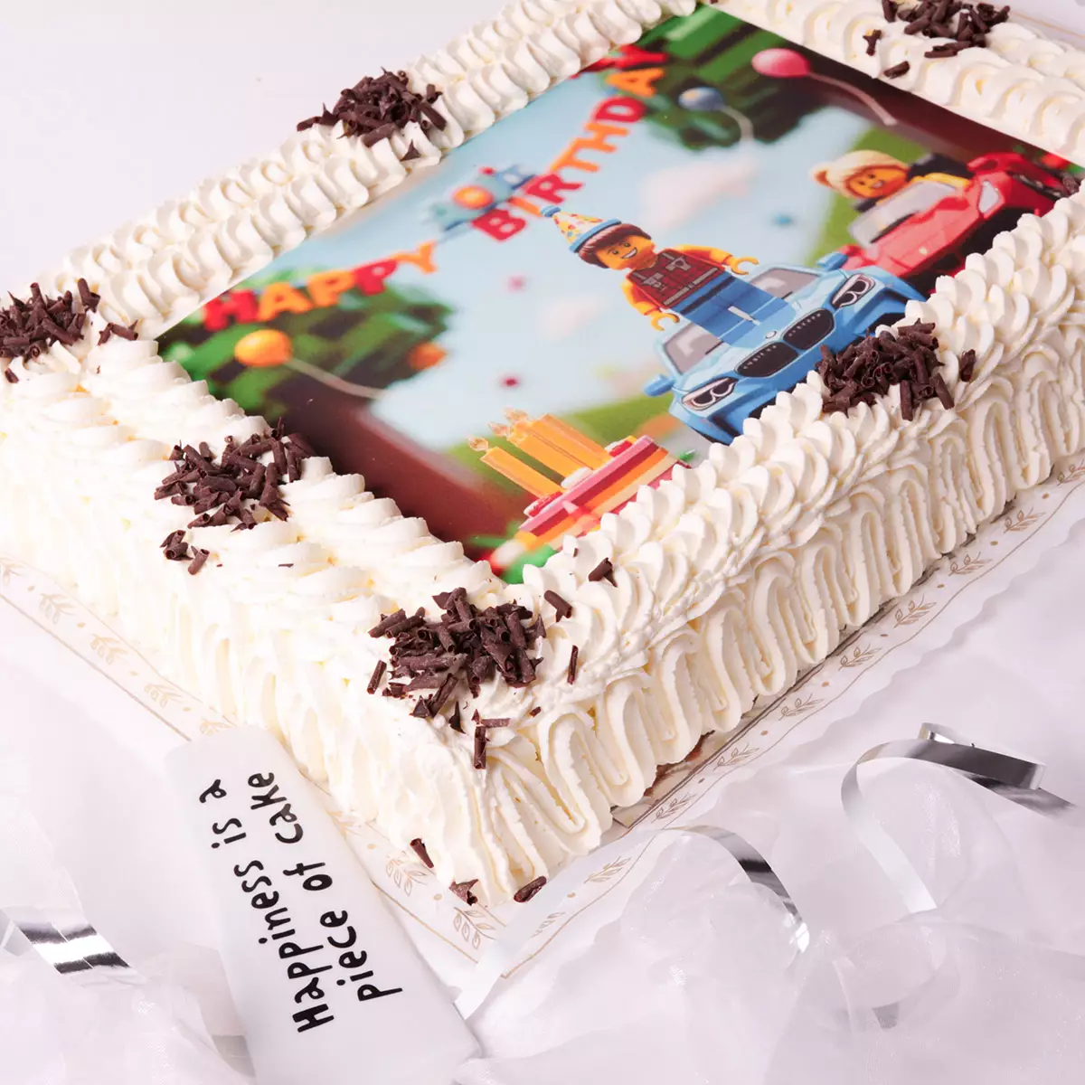 Suurikokoinen ja kaikille maistuva 30 hengen levykakku kätkee sisäänsä vaalean leivospohjan, jonka päälle levitetään valitsemasi täyte: esimerkiksi mansikkahilloa ja kermavaahtoa tai kuohkeaa kinuskimoussea. Mutta nyt saat vielä jotain extraakin. Kakun pinnalle tulostetaan nimittäin syötävä kuva, jonka sinä saat itse päättää. Oli se sitten synttärisankarin hymyilevä selfie, yrityksen logo tai vaikkapa mummon lempikuva kesämökiltä - kakku on takuulla juhlien puheenaihe. Kokonaisuus viimeistellään laktoosittoilla kermapursotuksilla ja suklaarouheella.