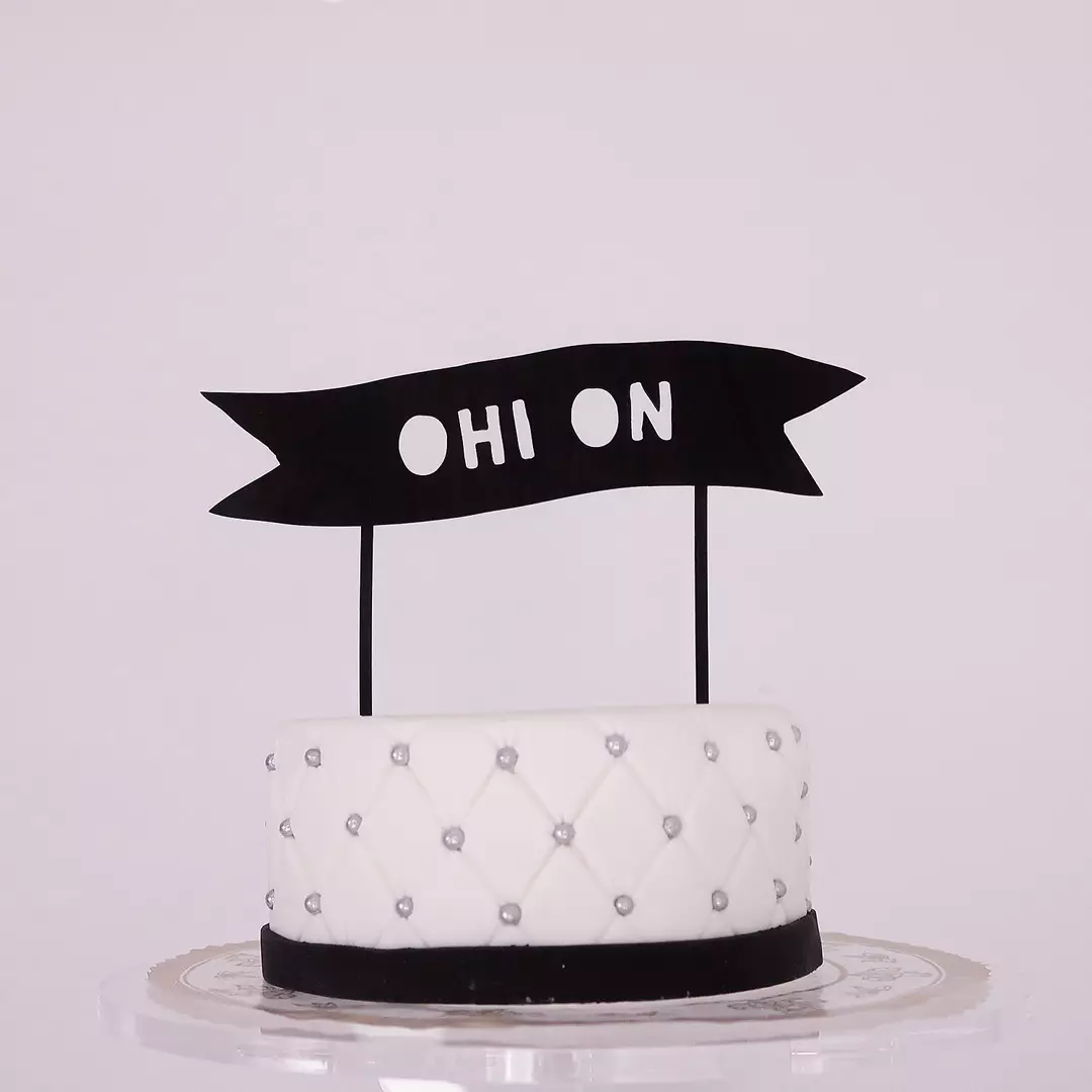 Ohi on...koulu, työura, armeija... Tämä näyttävä ja moderni kyltti sopii niin valmistujaisten kakkuun kuin myös vaikkapa eläkkeelle jäämistä juhlistamaan. Kylttiin on kaiverrettu teksti ”OHI ON”. Kotimaisesta koivuvanerista valmistettu ja elintarvikekäyttöön sopiva mustan värinen koriste tehdään käsityönä Suomessa. Suosittelemme käyttämään tikkujen ympärillä kelmua kun se laitetaan kakkuun, niin koristetta voi käyttää useamman kerran ja se säilyy parempana.