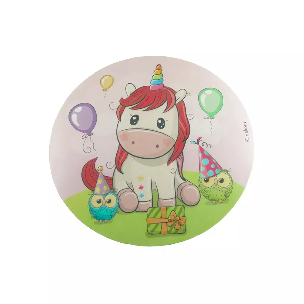 Täydellisissä juhlissa pitää olla kakkua, yksisarvisia ja ripaus taikaa. Kata satumaisen kaunis juhlapöytä ja yllätä yksisarvisfani tällä suloisella kakkukuvalla! Vohvelikuva on varustettu herttaisella baby-yksisarvisen kuvalla ja se soveltuu esimerkiksi synttäribileiden koristeeksi, babyshowereille tai naamiaisjuhliin.