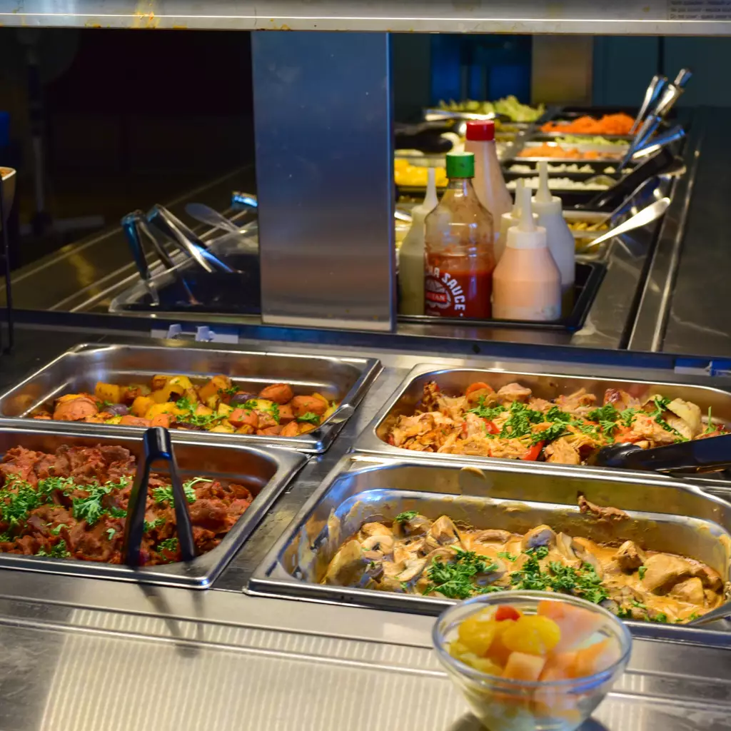 Iso nälkä – iso lounas. Kiinteä 11,90€ hintainen lounaamme sisältää lounasbuffetin kaikki herkut, eli lämpimän lounaan kuten esimerkiksi kanapastavuoan tai lihapullia pippurikastikkeessa sekä tietenkin salaattibuffan monipuoliset antimet. Lounas sisältää myös ruokajuomat, talon leipää sekä kahvin/teen ja oman leipomon jälkiruoan ja mahdollisuuden santsata. Tämä kiinteähintainen vaihtoehto sopii mainiosti, kun haluat maistuvan ja täyttävän aterian edulliseen hintaan.