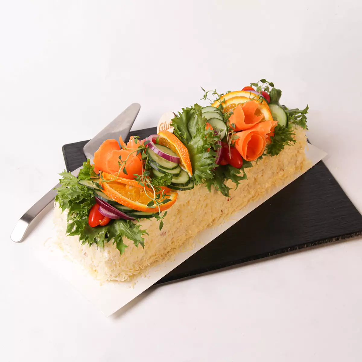 Fetavoileipäkakku tuo välimerellisen tuulahduksen ja raikkaita kasvisten makuja juhlapöytään. Gluteeniton voileipäkakku on loistava valinta kasvissyöjille ja sellaisiin juhliin, joista löytyy varmuudella monenlaisia erityisruokavalioita noudattavia. Tässä kakussa yhdistyvät täyteläinen fetajuusto ja tuoreet kauden kasvikset sekä raikkaat välimeren yrtit. Kakku leivotaan oman leipomon gluteenittomalla vaalealla voileipäkakkuleivällä ja koristellaan näyttäväksi tuorejuusto-majoneesikuorrutteella, maukkaalla emmentaljuustolla sekä tuoreilla kasviksilla.